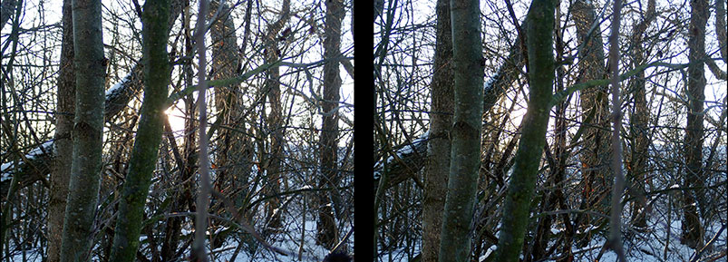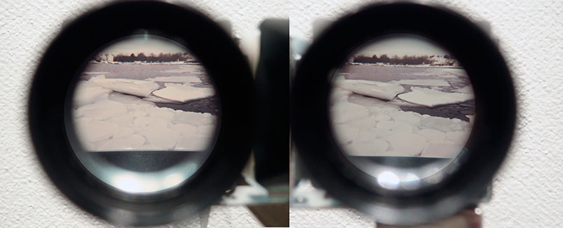 Instead of blackboxing the technology of stereoscopic renderings, the work showcases 3D-effects which arise from the interplay between binocular disparity and the convergence of the two eyes. The organically established link that connects the perceiving body with a particular sensation of depth is made explicit in allowing the viewer to experience stereoscopic views conditioned by an uncommon binocular setup peculiar to a body scheme different from ours.