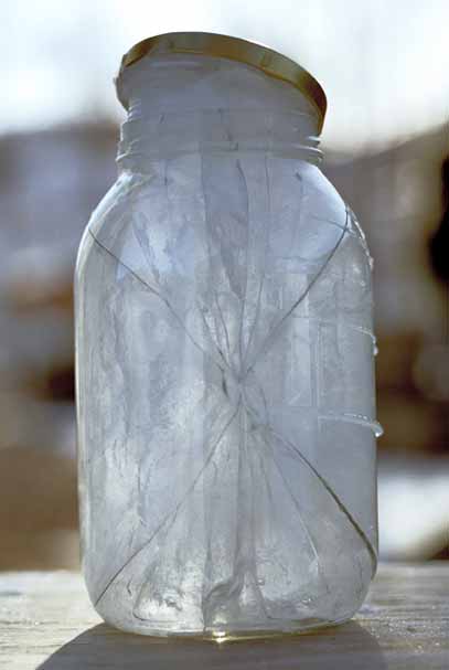 Cracking Cold - colour photographs of glass jars broken by the frost