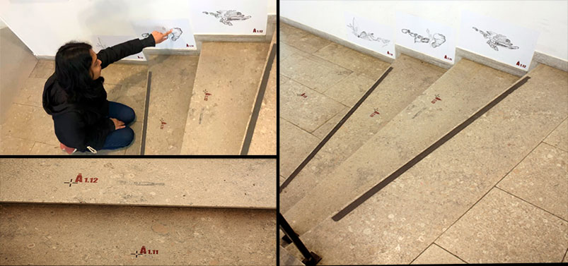 Reef Atlas, the first part of the project maps out the fossil imprints found on the floor slabs of the Gotland museum's staircases. The second part, Whispers of the Past, looks at rune script and the operation of the human cultural techniques in their futile attempt to preserve memories in limestone – only to end up with weathered church ruins, partly erased inscriptions and fragmentary fossil collections.