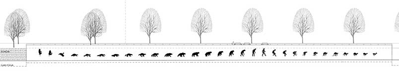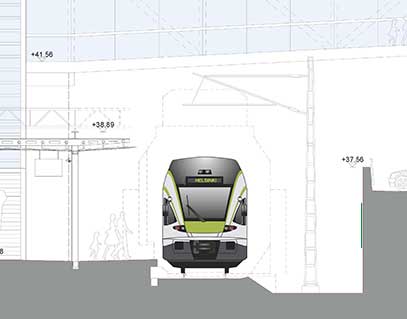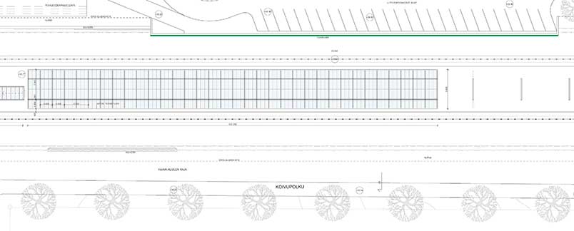 Plan and section drawings of the Leinelä station. The art work is attached to the station wall.