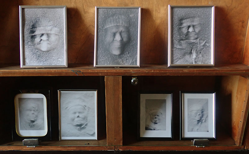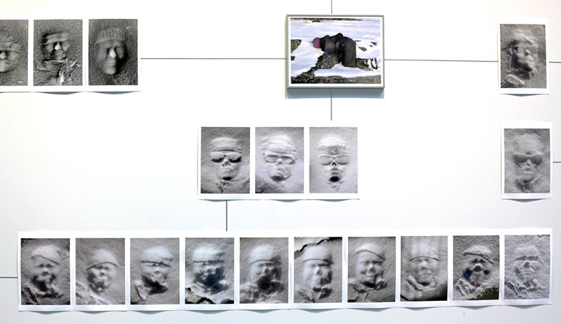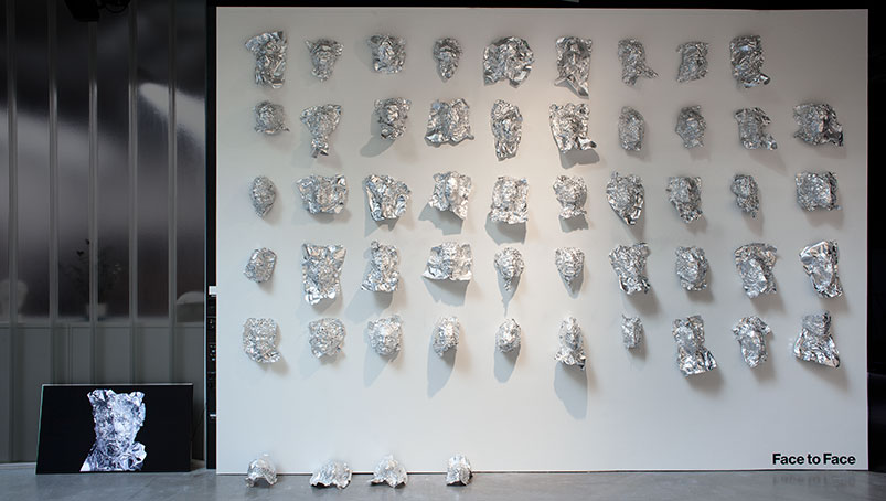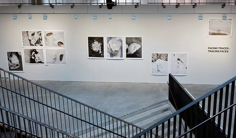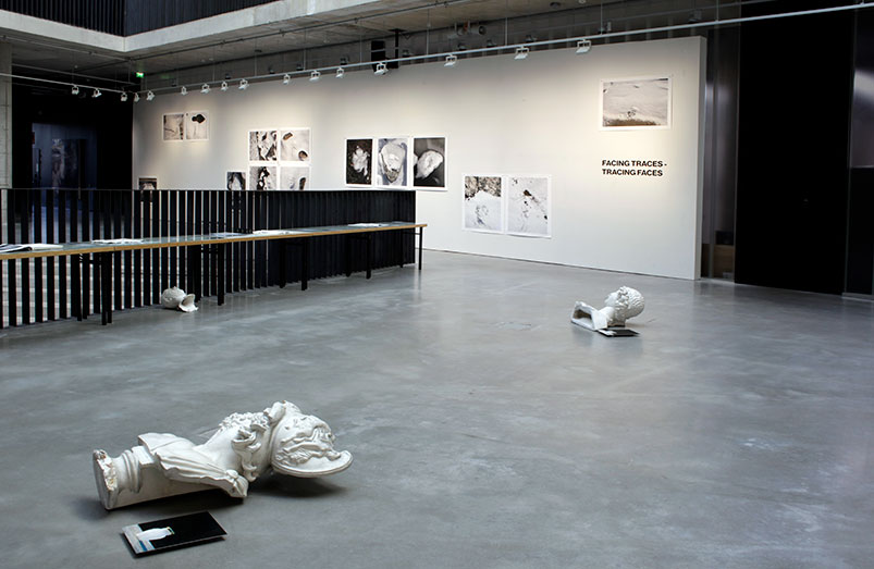 The research exhibiton entitled Facing Traces - Tracing Faces - Discovering an Imaginary Heritage was mounted in the Myllytori exhibition space in the heart of the Academy of the Fine Arts building at the Uniarts Helsinki Sörninen Campus 3.-21.9.2025. The exhibition included a participatory workshop where the audience was invited to make their own masks by pressing and sculpting their faces into tinfoil, to be displayed on the wall. The show and the workshop were designed in collaboration with the artist-curator Nina Liebenberg.