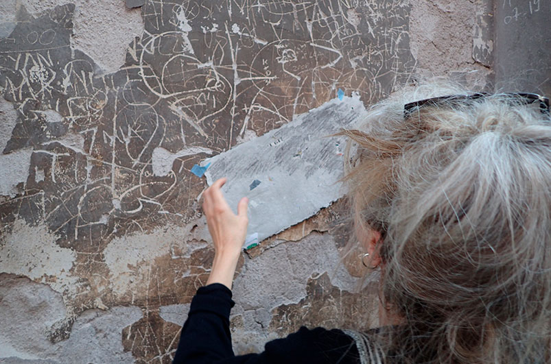 Sometimes the pressure of the pencil revealed rubbings that I otherwise would not have noticed, and vice versa, an inscription that at first seemed clearly discernible, would just not render itself on the substrate due to uneven wall surface or a too fragile sheet of paper.