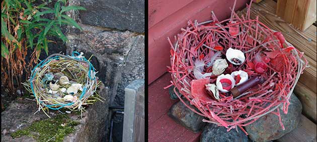 Bird nests fabricated from the debris of plastic shock tube detonator wires drifted ashore