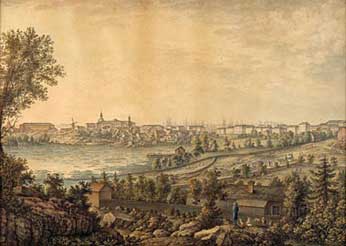 Kluuvi Bay seen from the place of the present Parliament House Aquarel by Wilhelm Demoine c. 1823