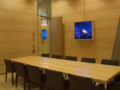 The artwork is situated in the underground conference rooms of the Finnish Parliament House in Helsinki . I applied the idea of a wooden library to a series of conference rooms where each cabinet was designed to be furnished with different wood material and this way dedicated to a specific tree species. The wall and floor panels as well as the furniture of each cabinet were made of a different tree art, e.g. birch, pine, maple, ash or alder.